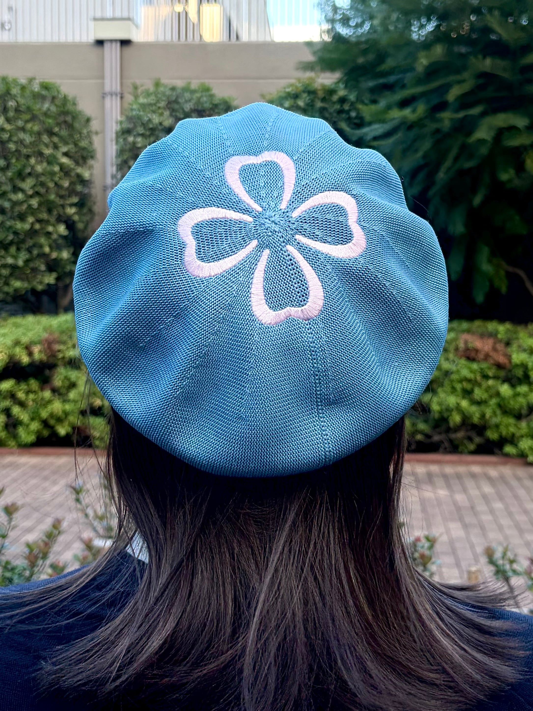 水色のクラゲのベレー帽です。