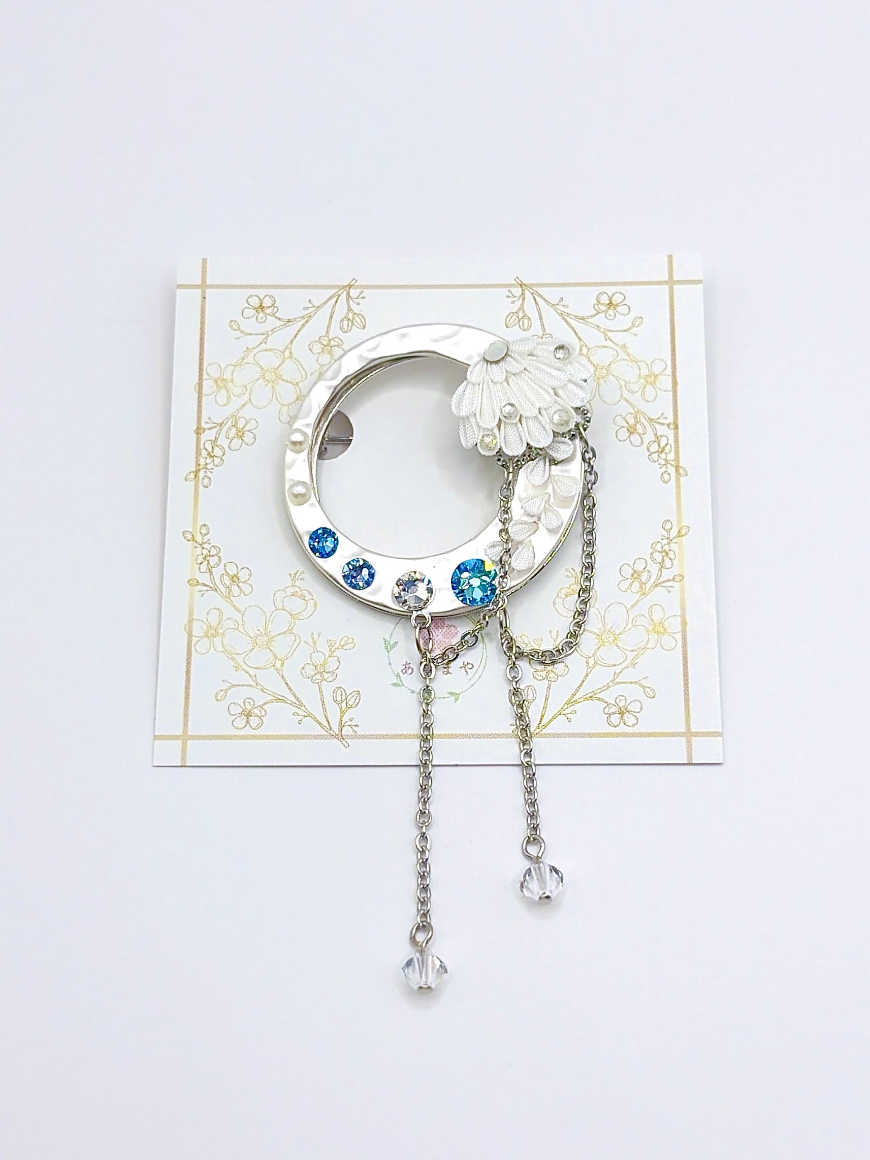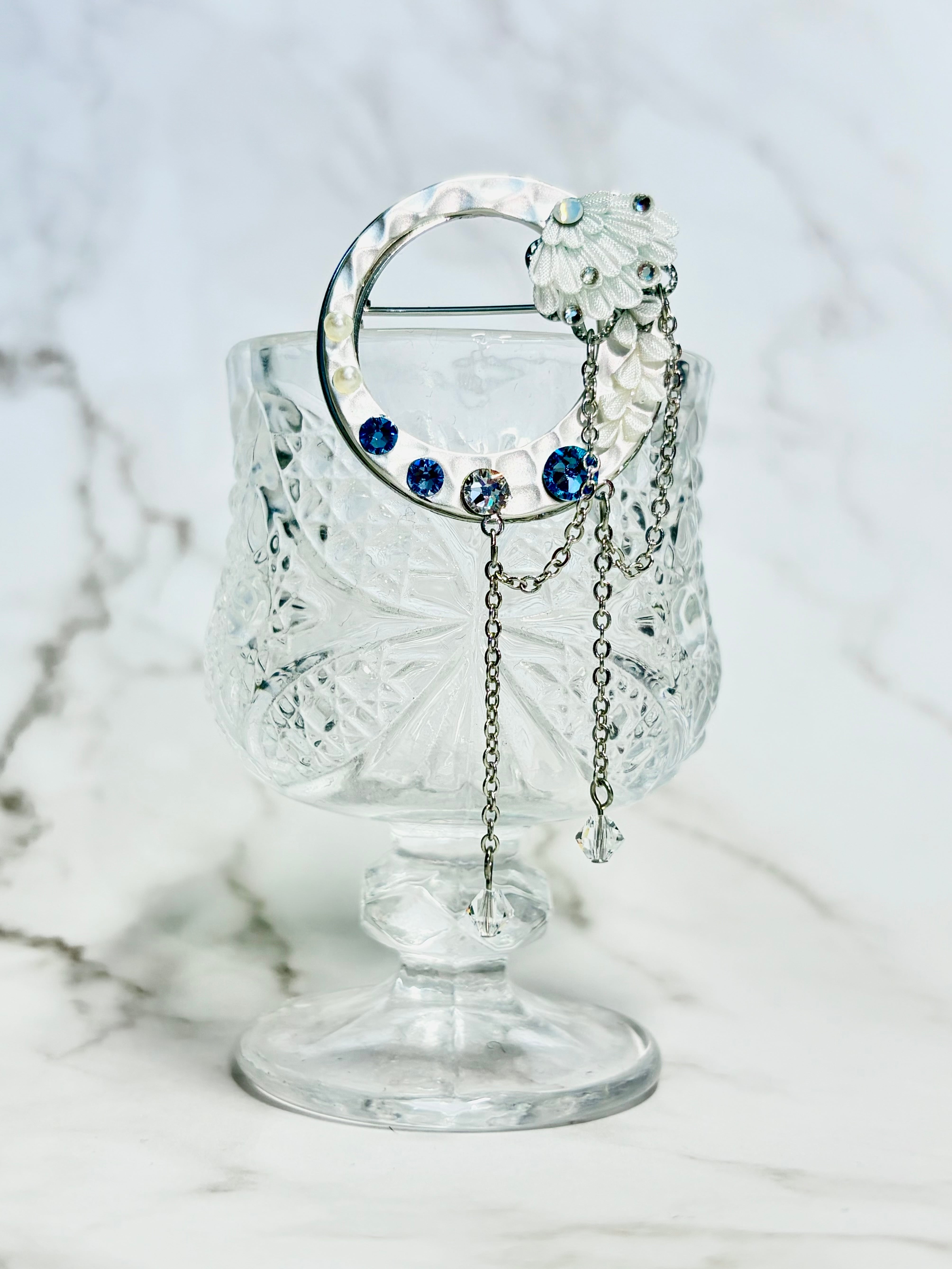 マットなシルバー金具にきらりと光る水色のクリスタルガラスかアクセント。