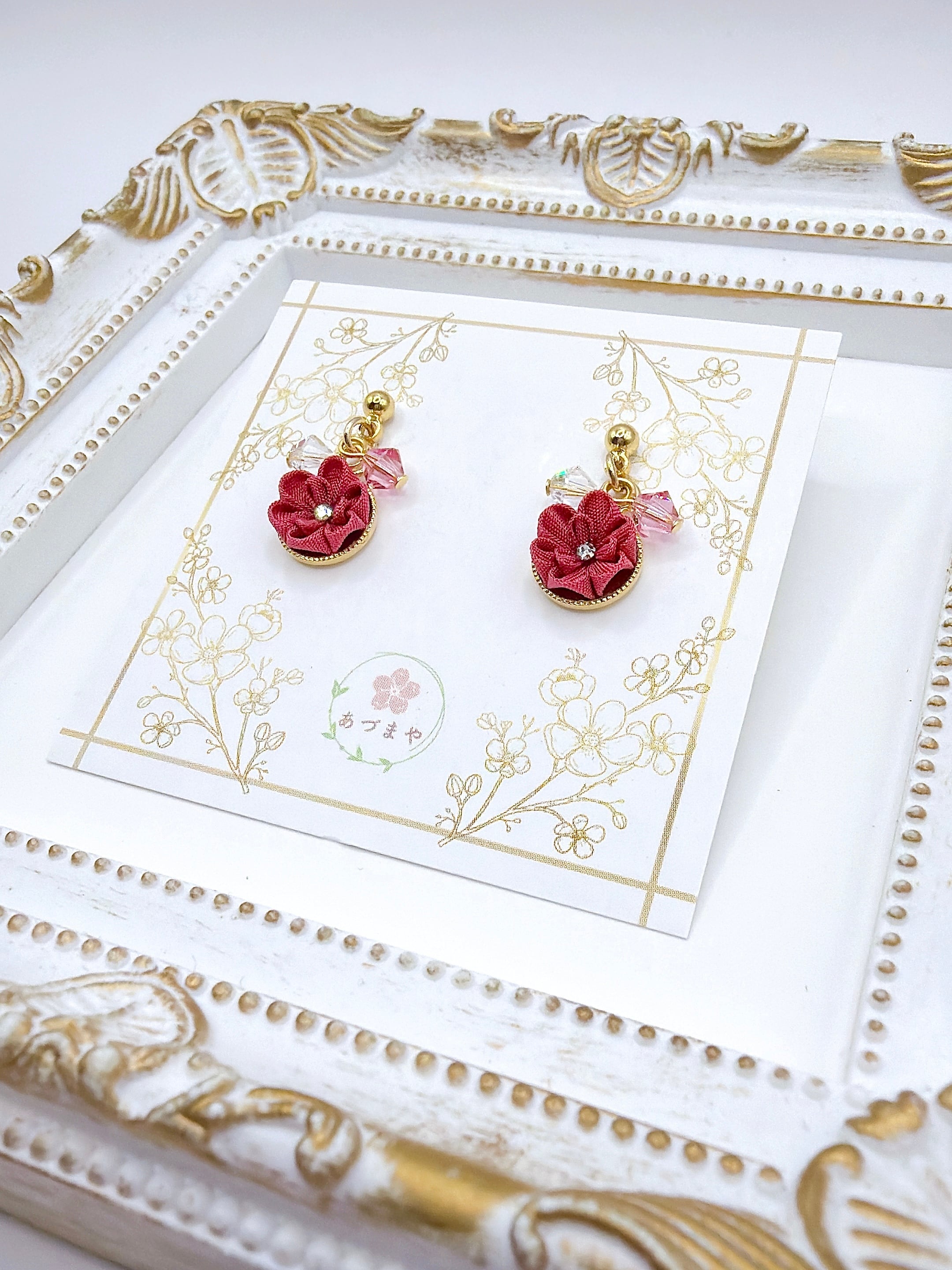 そんなつまみ細工を使用した、和装はもちろん、普段使いしやすいサイズとデザインのアクセサリーを意識して作っております。