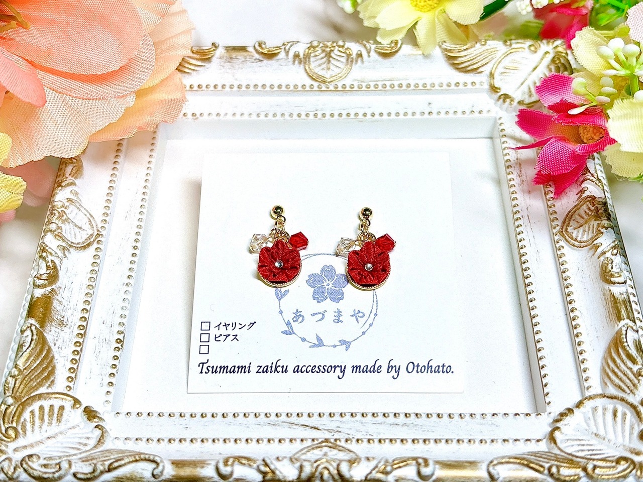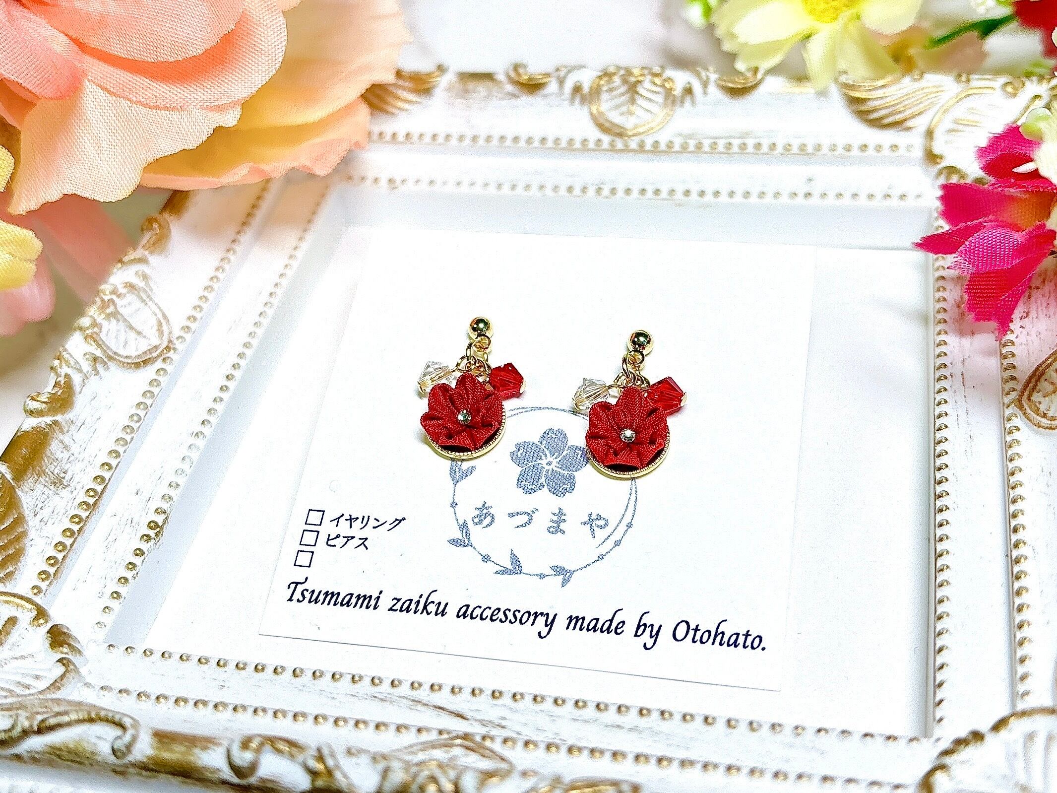 そんなつまみ細工を使用した、和装はもちろん、普段使いしやすいサイズとデザインのアクセサリーを意識して作っております。