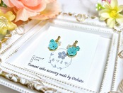 金具部分について、傷や汗などの汚れにより錆びてしまう事がございます。アクセサリー使用後は柔らかい布などで優しく拭いてから保管してください。