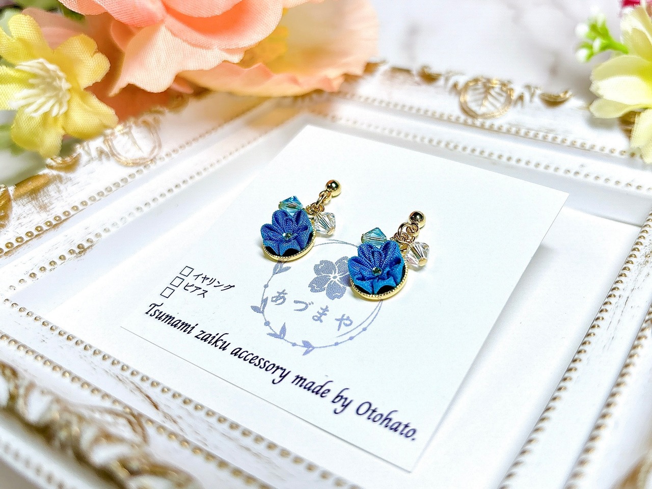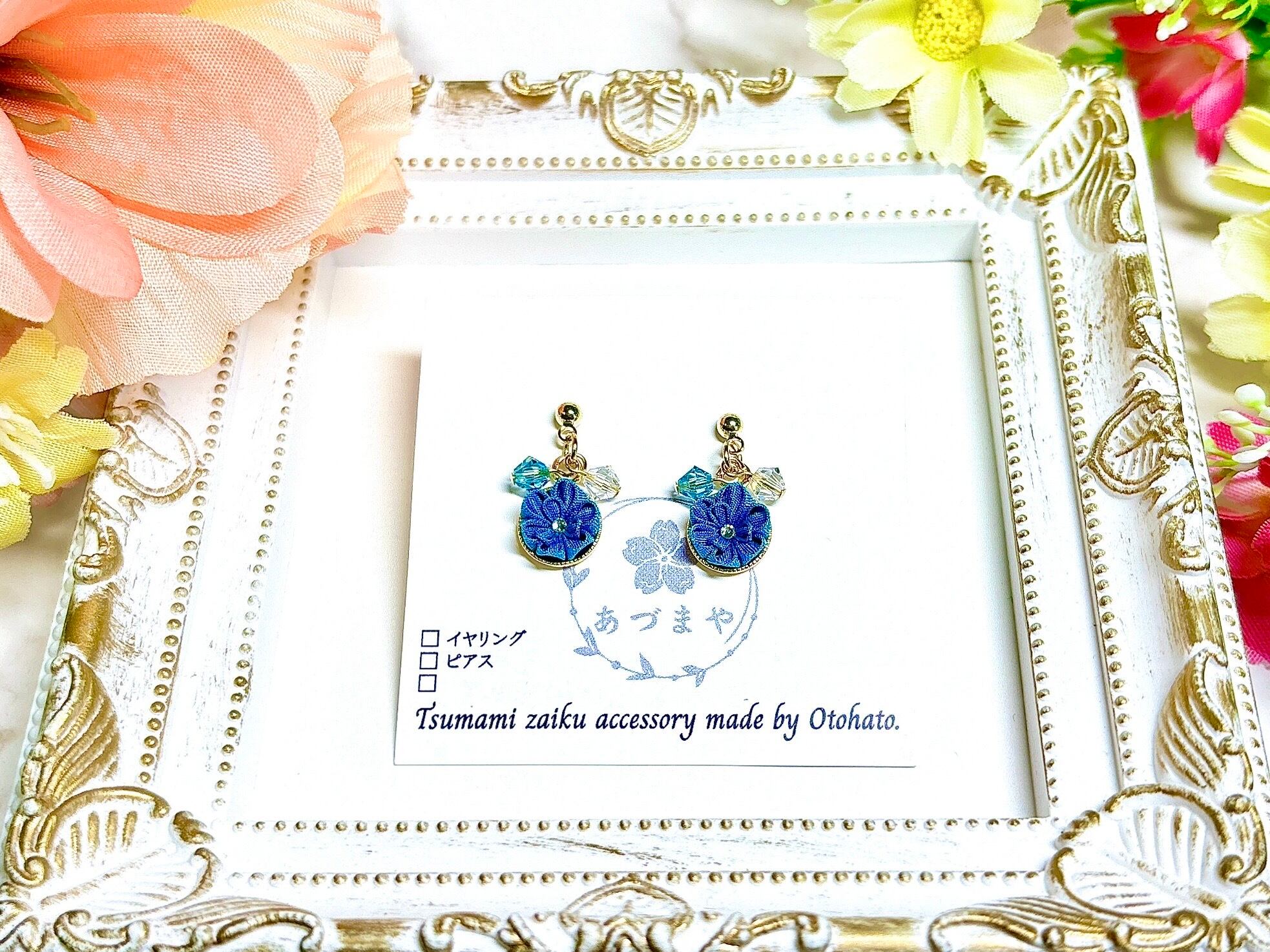 そんなつまみ細工を使用した、和装はもちろん、普段使いしやすいサイズとデザインのアクセサリーを意識して作っております。